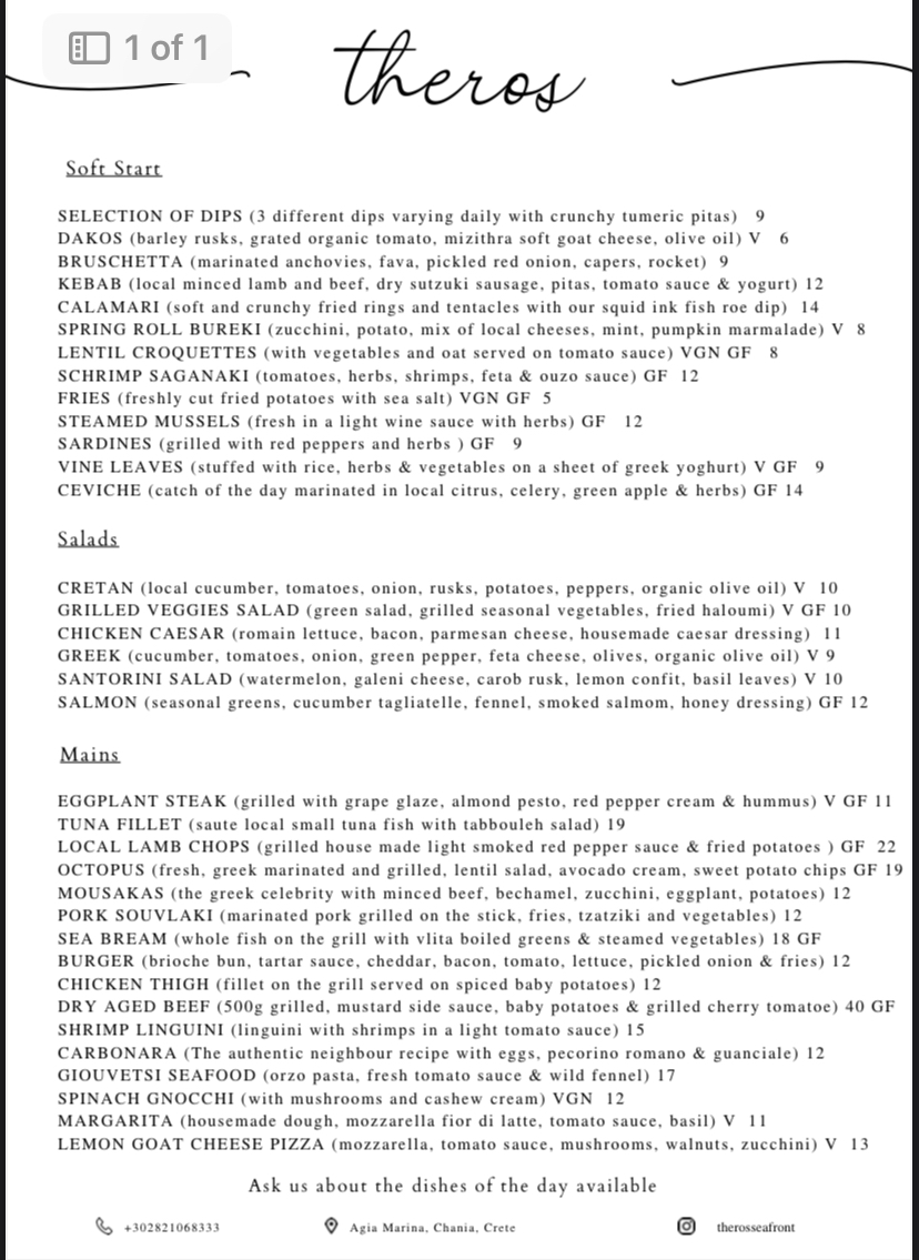 Introducing Theros, a hidden gem nestled along the tranquil shores of Agia Marina, Greece. This remarkable restaurant offers a unique culinary experience that transcends the ordinary. Guests rave about the exceptional dishes, featuring fresh, well-seasoned seafood and innovative creations like the intriguing sheep Tatar.